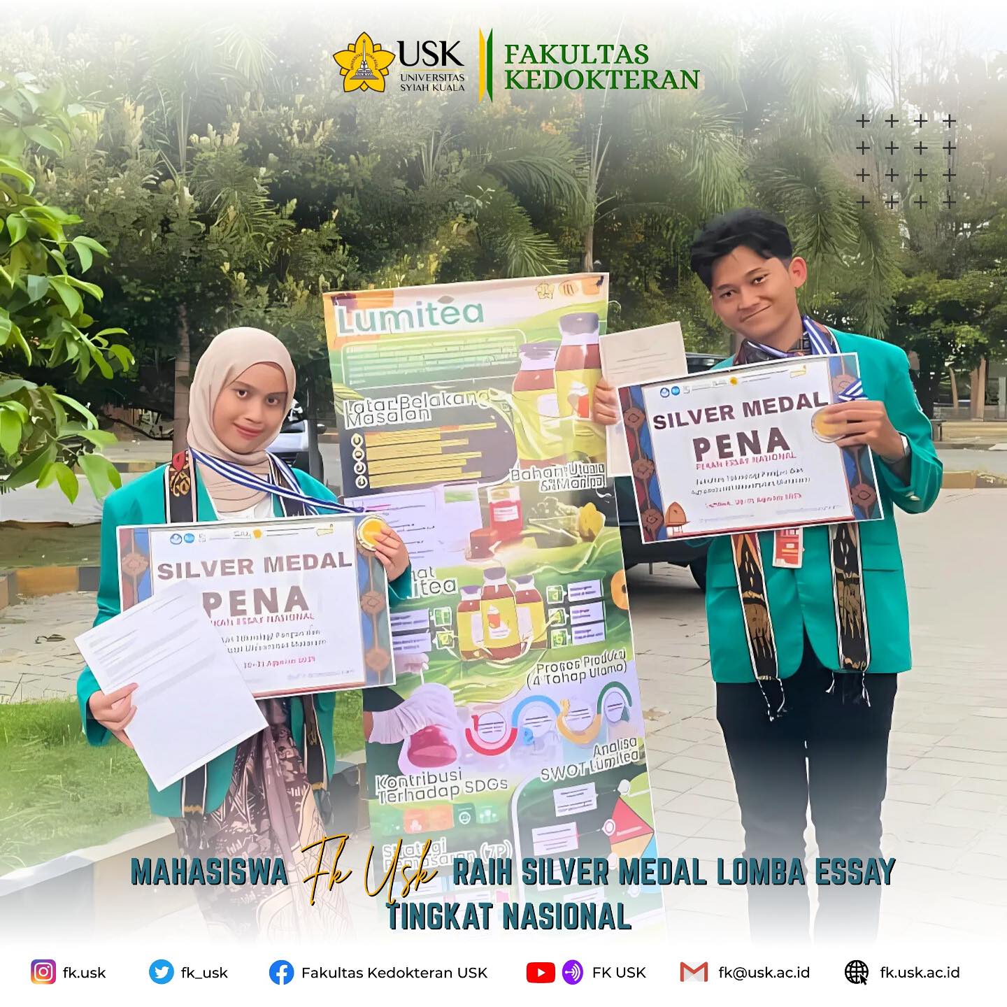 Mahasiswa FK USK Raih Juara 3 INTERMEDISCO Selamat kepada Ghaisya Al Haura Hayya Muhsin dan Khairasayyidah (PD’22) yang berhasil meraih Juara 3 lomba esai di INTERMEDISCO (Interfaculty of Medicine...