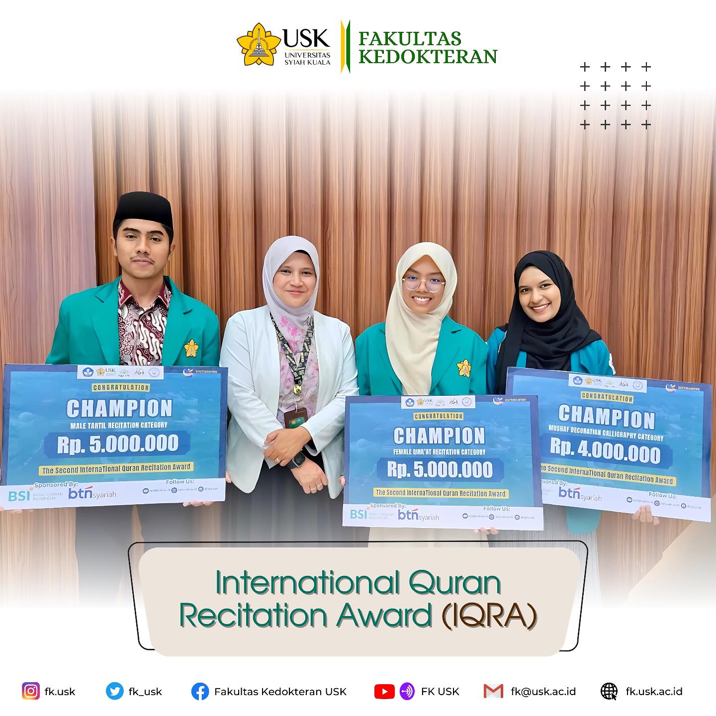 Prestasi membanggakan dari Fakultas Kedokteran USK! Mahasiswa FK USK berhasil meraih juara pada ajang The Second International Quran Recitation Award (IQRA). Selamat atas pencapaian luar biasa ini! Semoga menjadi...