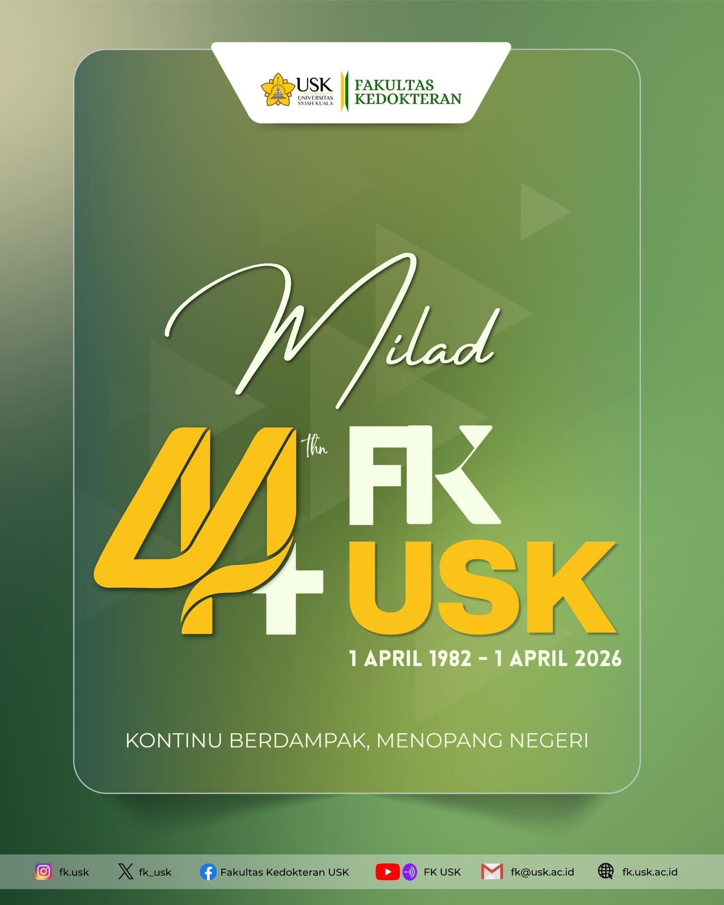 Milad ke-44 Fakultas Kedokteran Universitas Syiah Kuala1 April 1982 – 1 April 2026 44 tahun perjalanan dalam mencetak generasi dokter yang berintegritas, berilmu, dan berdampak bagi masyarakat. Dengan semangat...